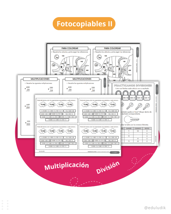El cuadernillo Fotocopiables: Multiplicación y división II (sugerido para segundo ciclo de primaria):