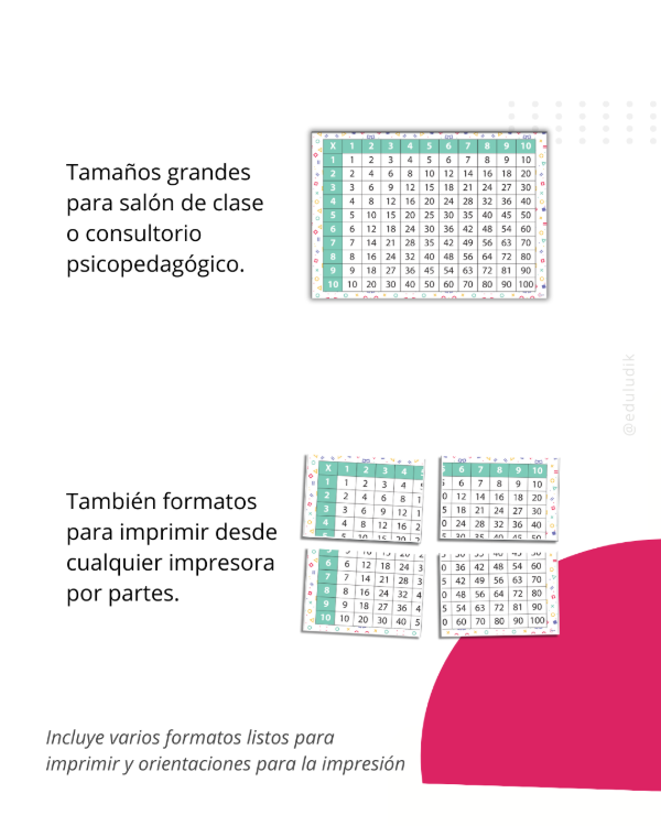 🎁 Tablas pitagóricas (varios tamaños)